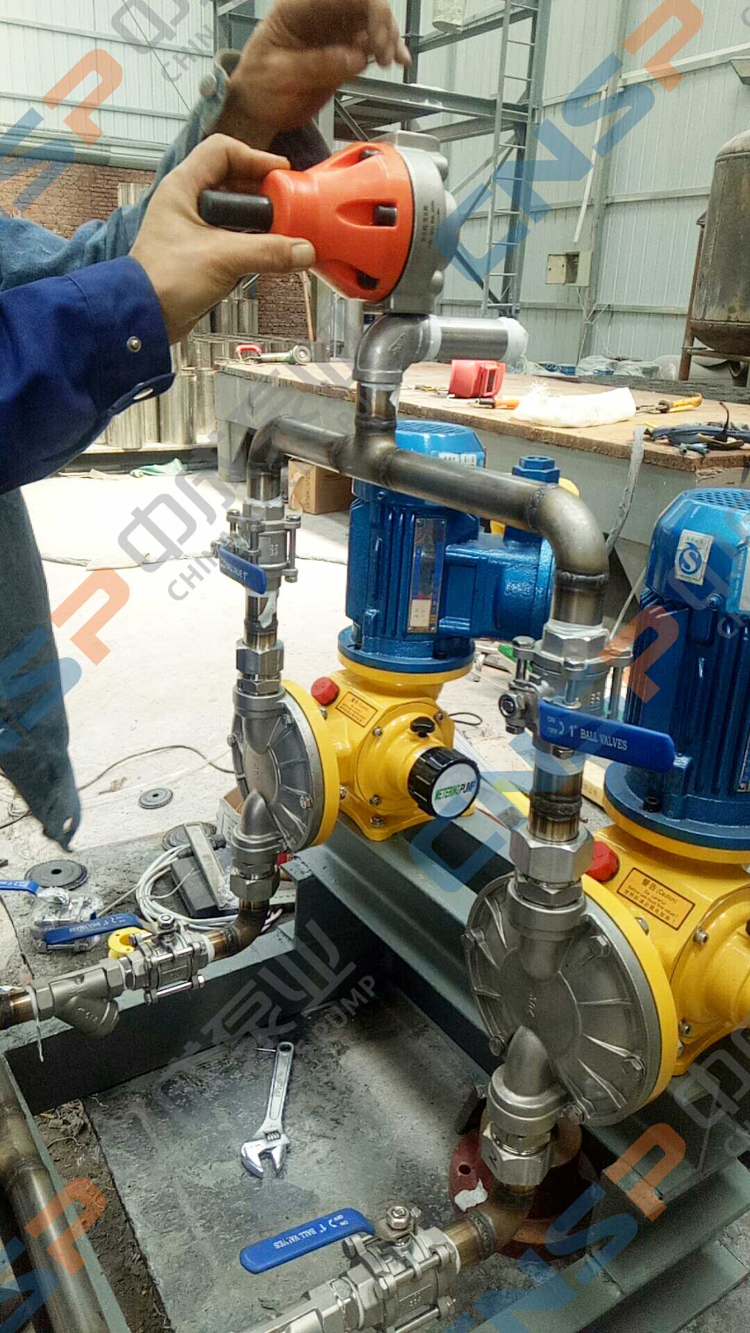 河北某節能技術公司是我廠長期合作伙伴,近期在我廠采購一批計量泵,型號為GM-500/0.5,我方指導客戶安裝以保證客戶的設備從開機調試起正常運行。中成泵業經考驗的項目管理體系及豐富的安裝經驗可確保客戶的設備發揮最大的價值,正確的安裝是長期穩定運行的基礎。